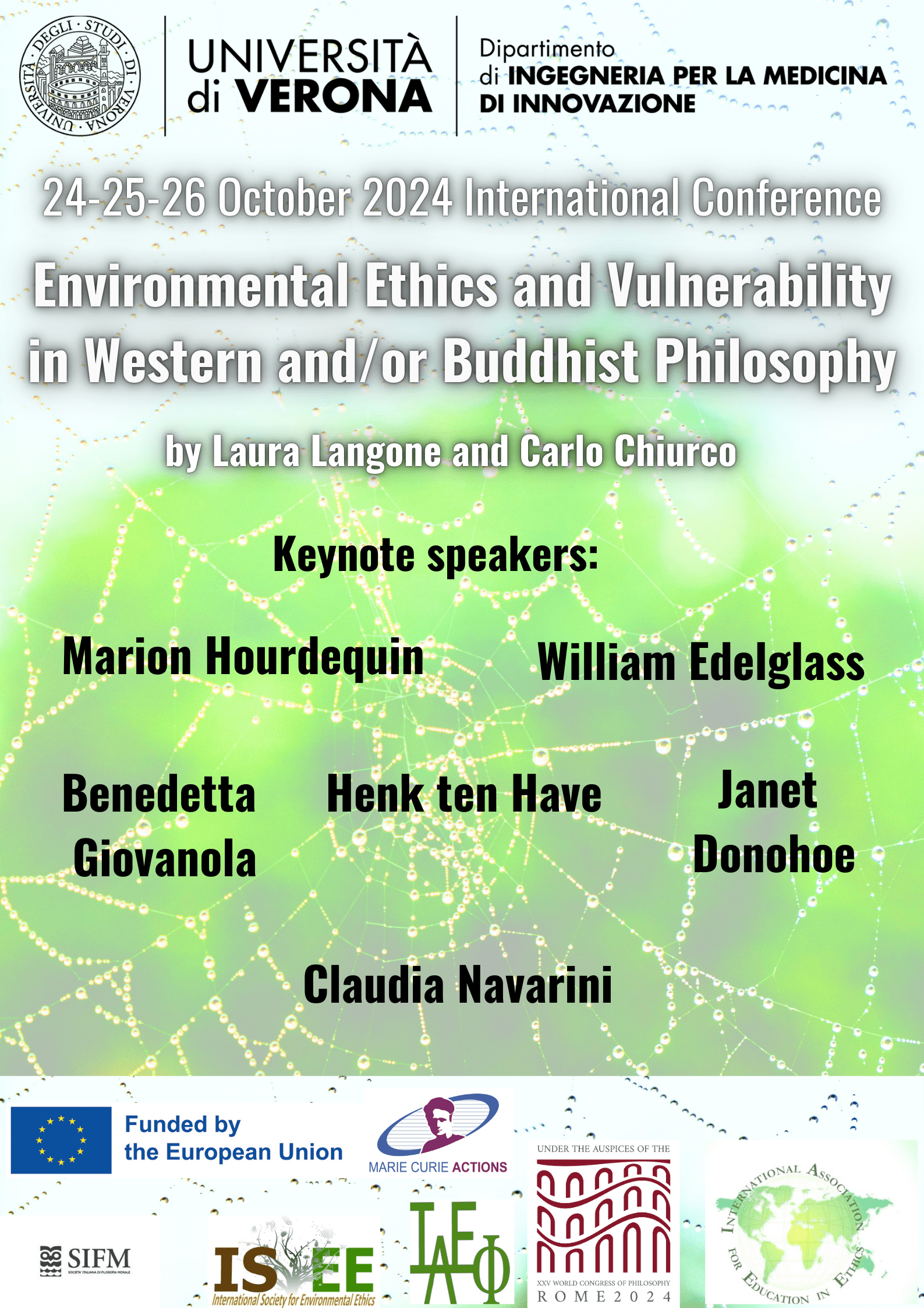 Dal 24 al 26 ottobre si terrà all’Università di Verona la Conferenza Internazionale Etica ambientale e vulnerabilità in dialogo tra Occidente e Oriente, organizzata dalla Dott.ssa Laura Langone e dal Prof. Carlo Chiurco del Dipartimento di Ingegneria per la Medicina di Innovazione.